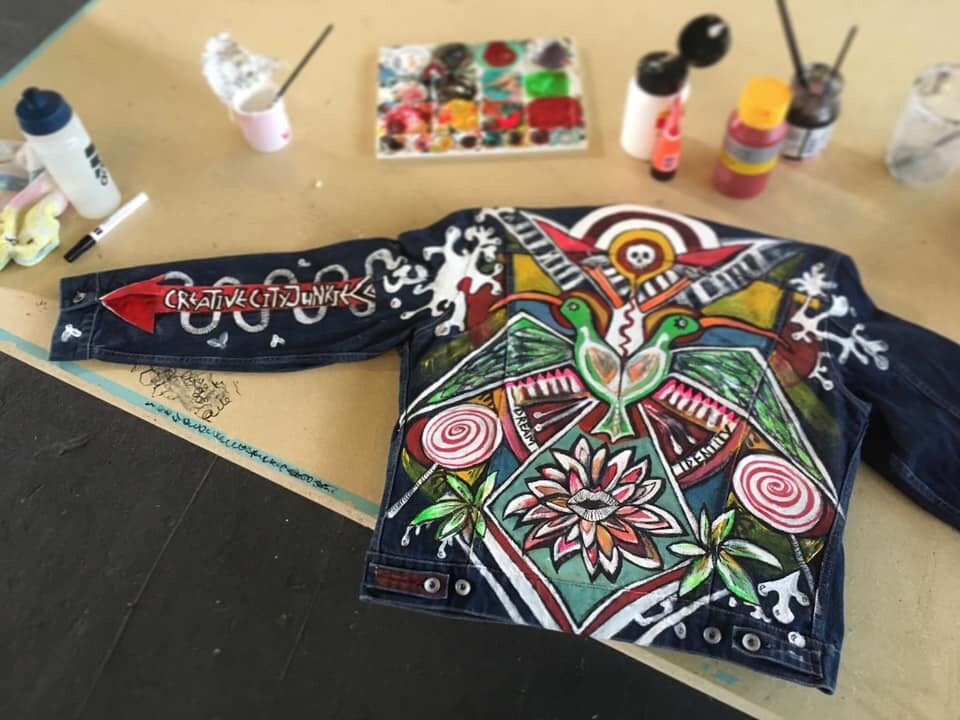 Handpainted, wearable art is likely to fade during time. But don't be shocked: The 'used' version will probably look even more awesome! You'll never get bored of it, that's for sure! Keep in mind that, eventually, you'll have to embrace that kind of 'vintage' look.